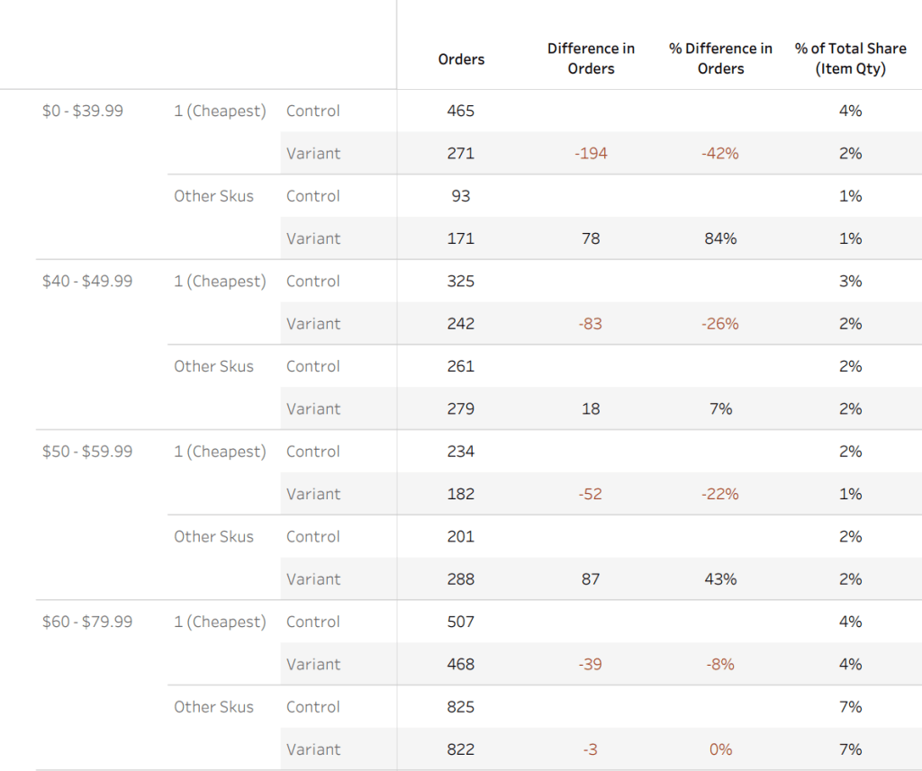 The Data Scientists and Project Manager team asked me to create a Tableau Dashboard to be able to look at the results of the A/B Tests. Data would need to be broken out by Control and Variant transactions, by Price Buckets, by Booking Window, as well as the ability to see how the lowest price skus were behaving vs all other skus. We needed this part due to price testing. All-in-pricing changed how we approached a lot of decisions in 2025.