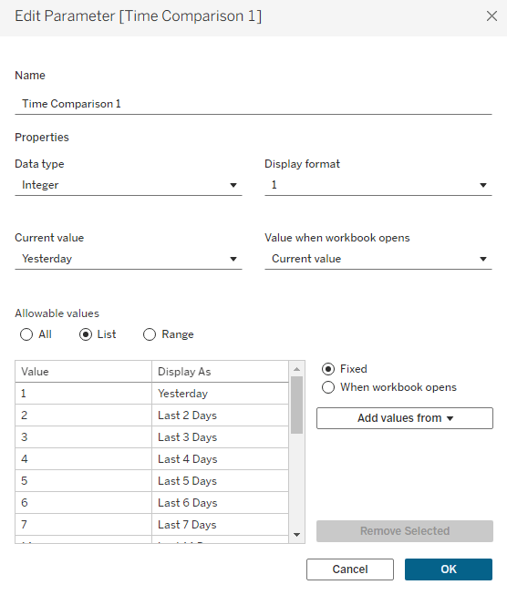Step (1) Create Parameters for Report Run Date and How Far Back You Want To Go For Sales