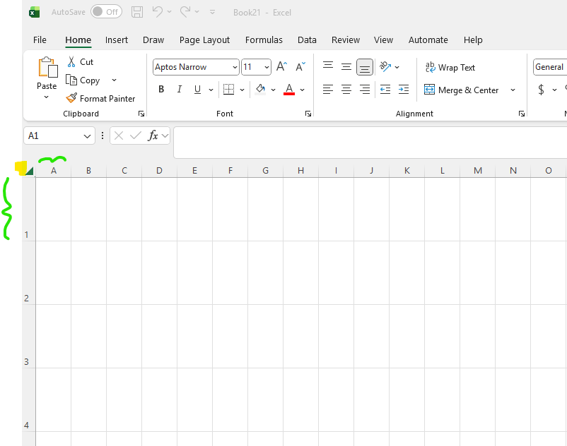 Step 2 — Fill in the cell in the top middle of your Excel file with Dark Green and add in conditional formatting